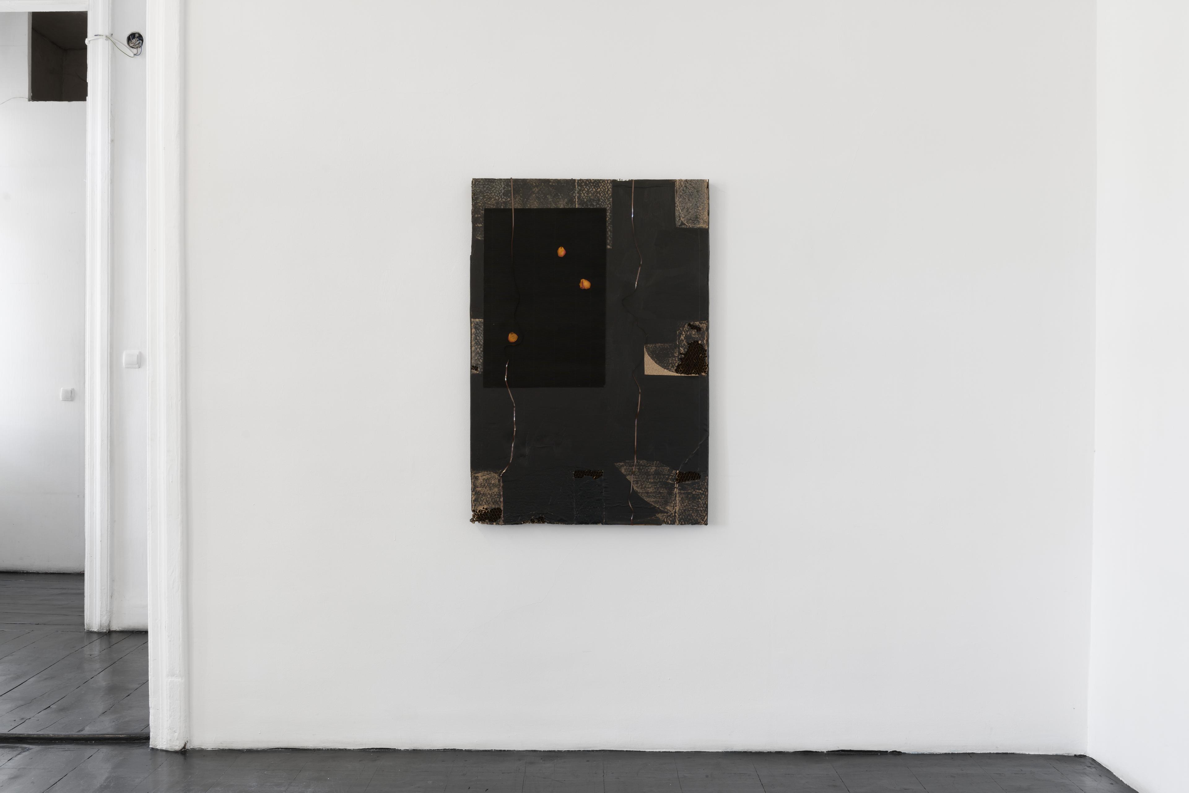 Keta Gavasheli, Voice note, 2024, Honeycomb cardboard, cassette tapes, dry flower petals, acrylic, 112 × 79 cm