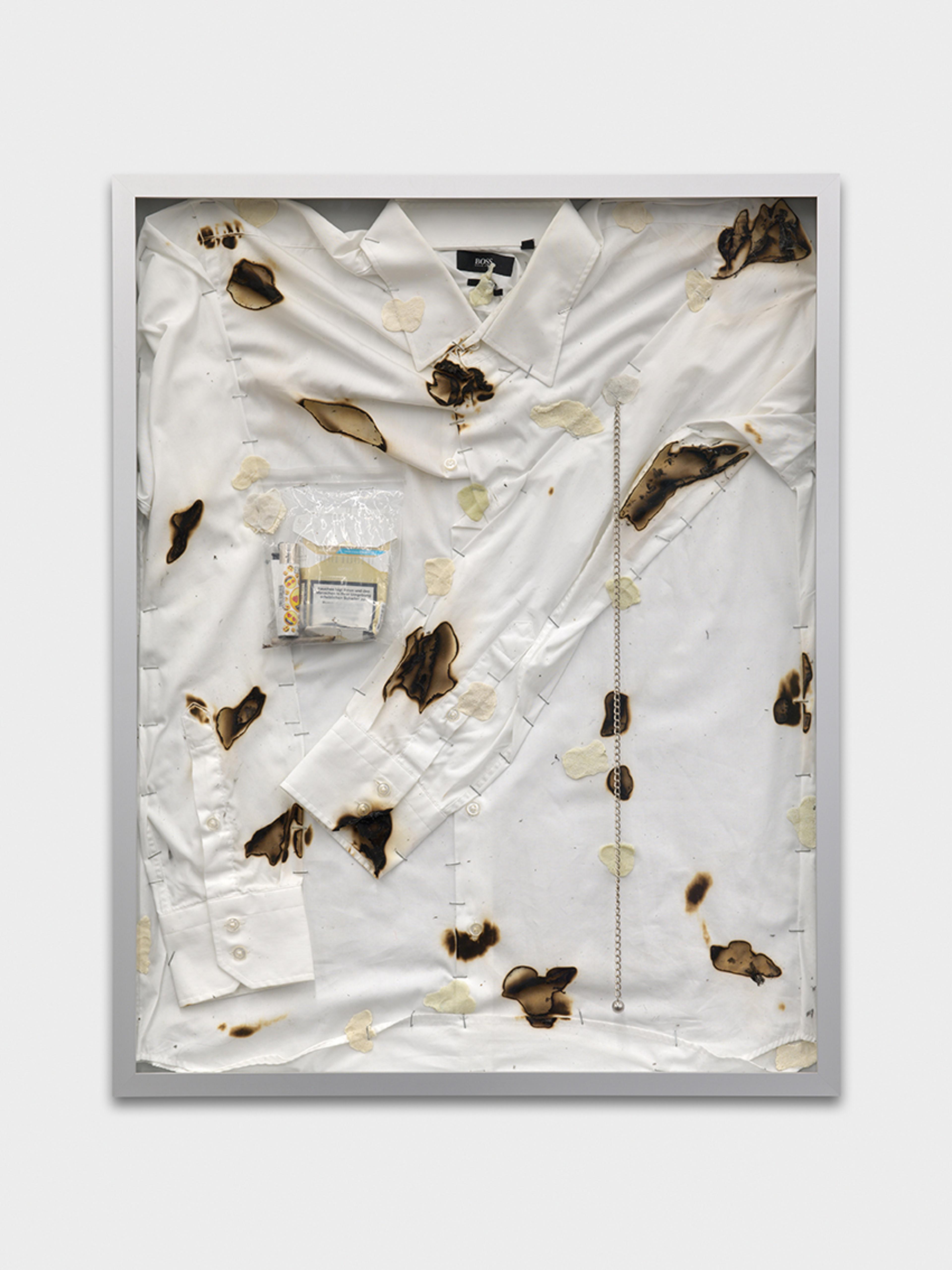 Sitara Abuzar Ghaznawi, Male extinction 2, 2021, Mixed media and shirt,