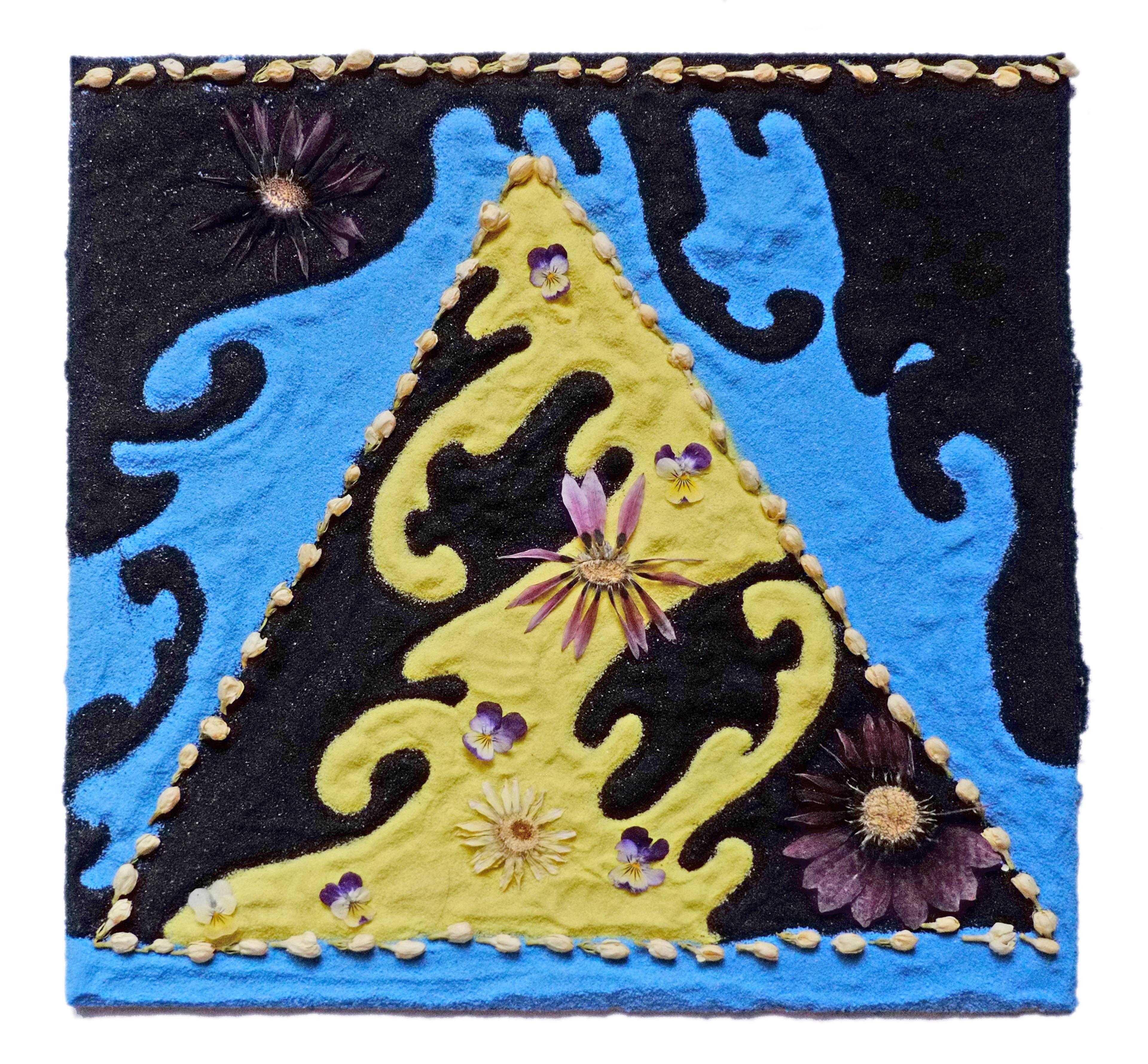 Lisa Alvarado, Flowers are our only garments, 2020, Sand, flowers, 35 × 35 cm