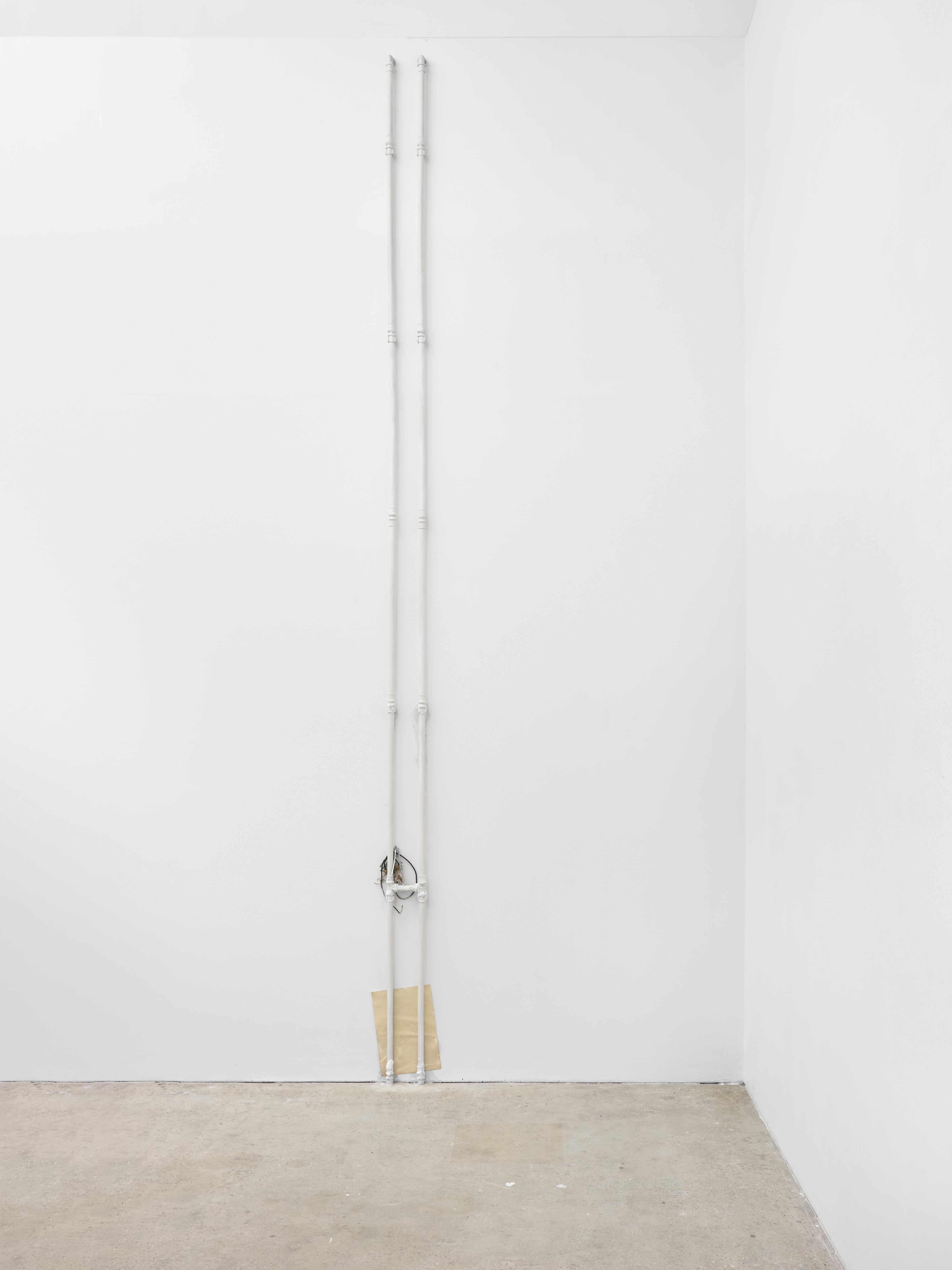 Tolia Astakhishvili, House of mending, 2024, Pipes, acryl, found objects, artificial snow, coffee, paper maché, paper, pencil, 340 × 40 cm