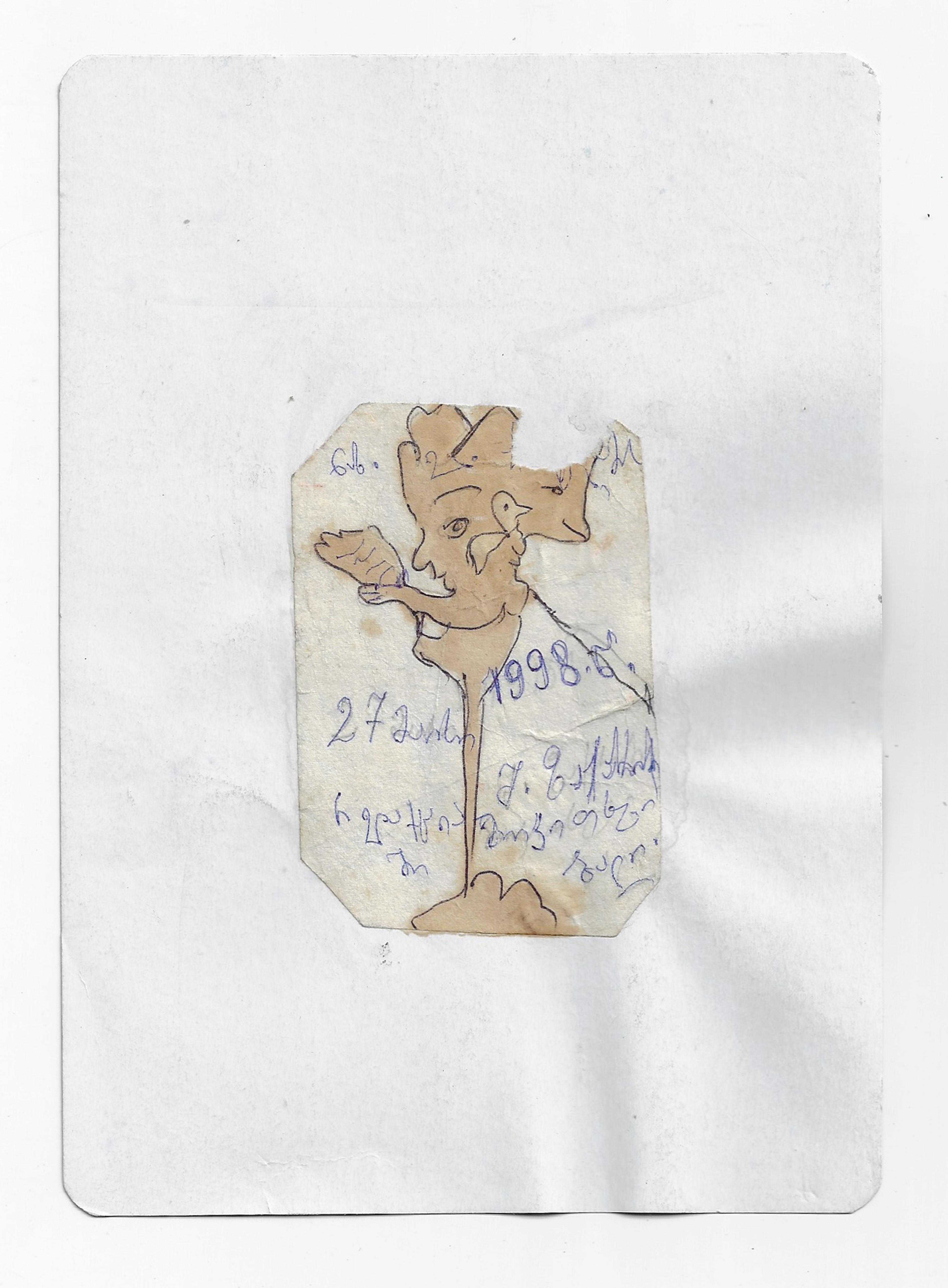 ელენე ჩანტლაძე, უსათაურო, 1998, შერეული ტექნიკა მუყაოზე, 20 x 14.3 სმ