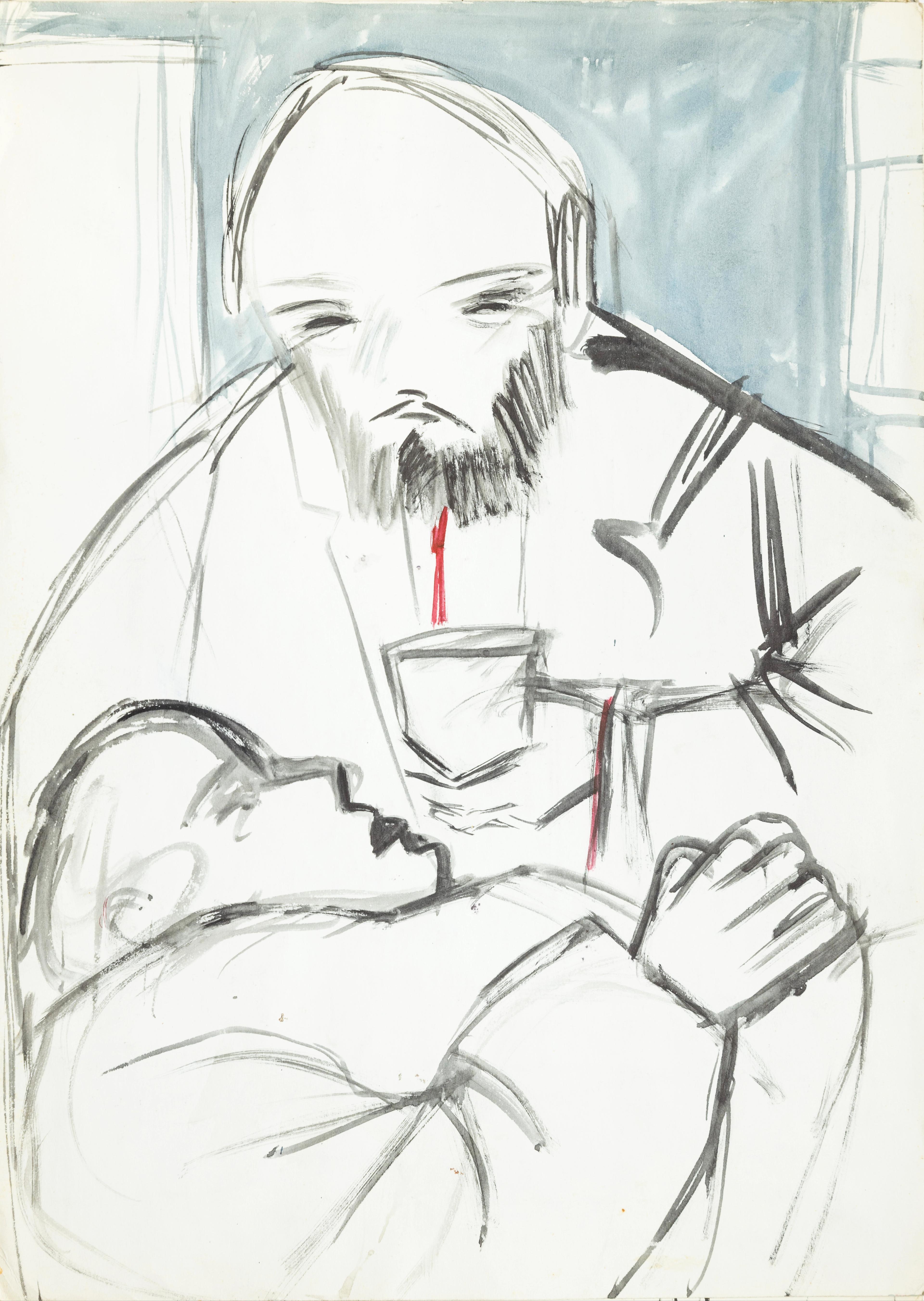 კარლო კაჭარავა, Murder, 1992, აკვარელი ქაღალდზე, ორმხრივი ნამუშევარი, 43 × 31 cm
